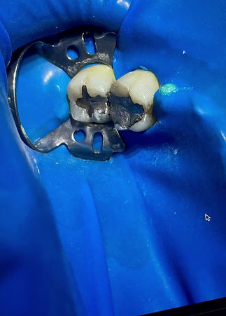 O amálgama (restauração escura), gera trincas nos dentes, que vão crescendo, até o momento que quebram o dente ao meio. Quando isso acontece, a remoção do dente é necessária...